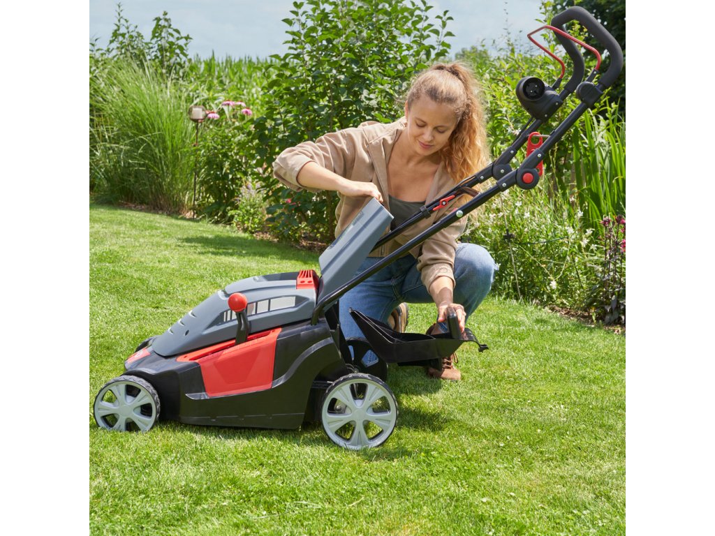 Výkonný 1400 W elektromotor a kosačka s hmotnosťou len 19,2 kg zaisťujú najlepší možný postup. Výšku kosenia je možné nastaviť pomocou centrálneho nastavenia výšky len jednou rukou - v 6 úrovniach od 28 mm do 68 mm. Kolesá XL umožňujú jazdiť s kosačkou hladko a bez námahy.