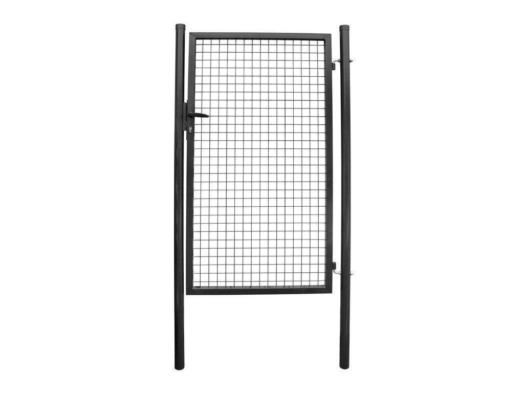 Záhradná jednokrídlová brána s výplňou zváranej siete s okami vo veľkosti 50 x 50 mm a hrúbkou drôtu 4 mm. Úprava je zinok + PVC. Farba antracit. Výška produktu = výška bránky od terénu po vrch krídla.