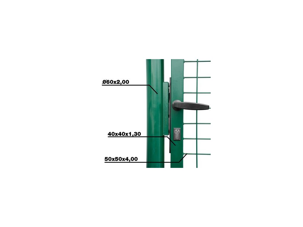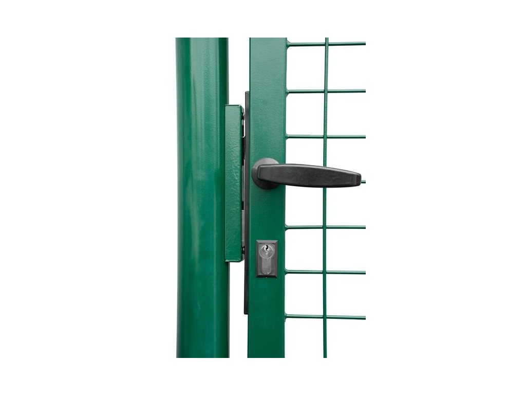 Záhradná jednokrídlová brána s výplňou zváranej siete s okami vo veľkosti 50 x 50 mm a hrúbkou drôtu 4 mm. Úprava je zinok + PVC. Farba zelená. Výška produktu = výška bránky od terénu po vrch krídla.