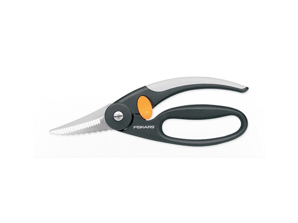 Silné, zahnuté nožnice na porciovanie rýb. Jednoducho sa s nimi odstraňujú šupiny, pitve a porciuje ryba. Pohodlná rukoväť pre pravákov aj ľavákov. Horná rukoväť potiahnutá s mäkkým elastomerom, spodná s okom, ktoré zabraňuje vyšmyknutiu ruky. Zámok je skonštruovaný pre bezpečné prenášanie.