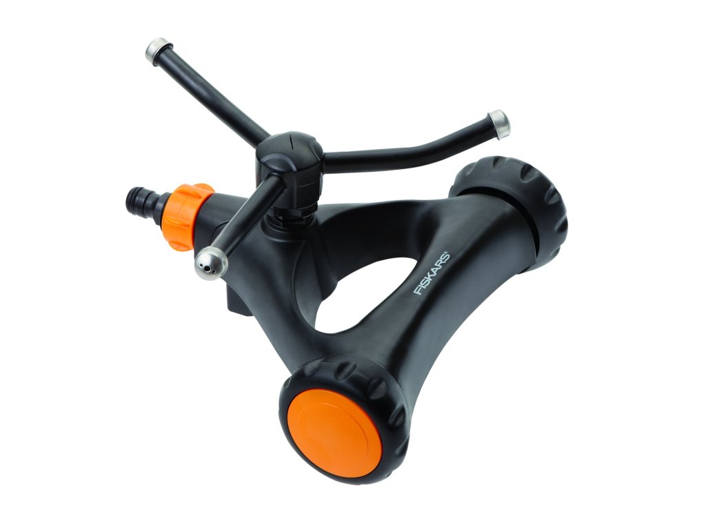 Vírivý zavlažovač FISKARS poskytuje jemné, rovnomerné, dažďové zavlažovanie. Určené pre malé a cielené miesta. Hlava zavlažovača je odolná a kovová. Zvýšenie stability poskytuje trojuholníková základňa. Pre komfortný pohyb po vašej záhrade je zavlažovač vybavený kolieskami. Vami vybranú plochu zavlažíte do priemeru 13 metrov. Pripojenie je univerzálne a kompatibilné s ostanými značkami.