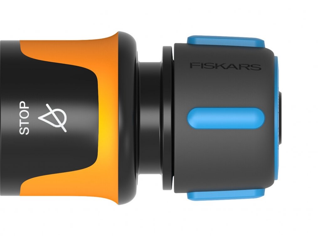 Rýchlospojka pre hadice FISKARS ponúka vnútorný STOP mechanizmus na prerušenie prietoku vody touto spojkou pri výmene zavlažovacích pištolí, zavlažovačov a tyčí. Taktiež je možné bez zastavenia prívodu vody pripojiť aj ďalšie hadice. Pri tejto činnosti nemusíte vypínať prívod vody. Bezpečnosť pri manipulácii poskytujú dotykové body SoftGripTM, aj keď sú mokré. Ľahkosť pripojenia k iným hadiciam FISKARS za pomoci farebného označenia. V porovnaní s rýchlospojkami s kovovými dielmi umožňuje pohodlnosť držania aj v chladných mesiacoch. Možnosť pripojenia aj k iným značkám, vďaka kompatibilite a univerzálnosti.