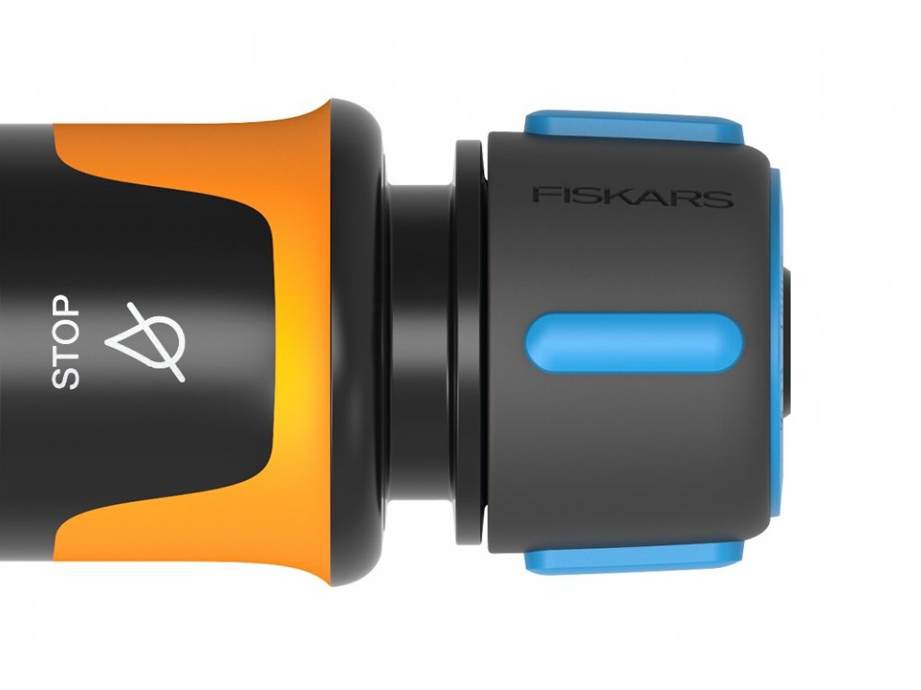 Rýchlospojka pre hadice FISKARS ponúka vnútorný STOP mechanizmus na prerušenie prietoku vody touto spojkou pri výmene zavlažovacích pištolí, zavlažovačov a tyčí. Taktiež je možné bez zastavenia prívodu vody pripojiť aj ďalšie hadice. Pri tejto činnosti nemusíte vypínať prívod vody. Bezpečnosť pri manipulácii poskytujú dotykové body SoftGripTM, aj keď sú mokré. Ľahkosť pripojenia k iným hadiciam FISKARS za pomoci farebného označenia. V porovnaní s rýchlospojkami s kovovými dielmi umožňuje pohodlnosť držania aj v chladných mesiacoch. Možnosť pripojenia aj k iným značkám, vďaka kompatibilite a univerzálnosti.