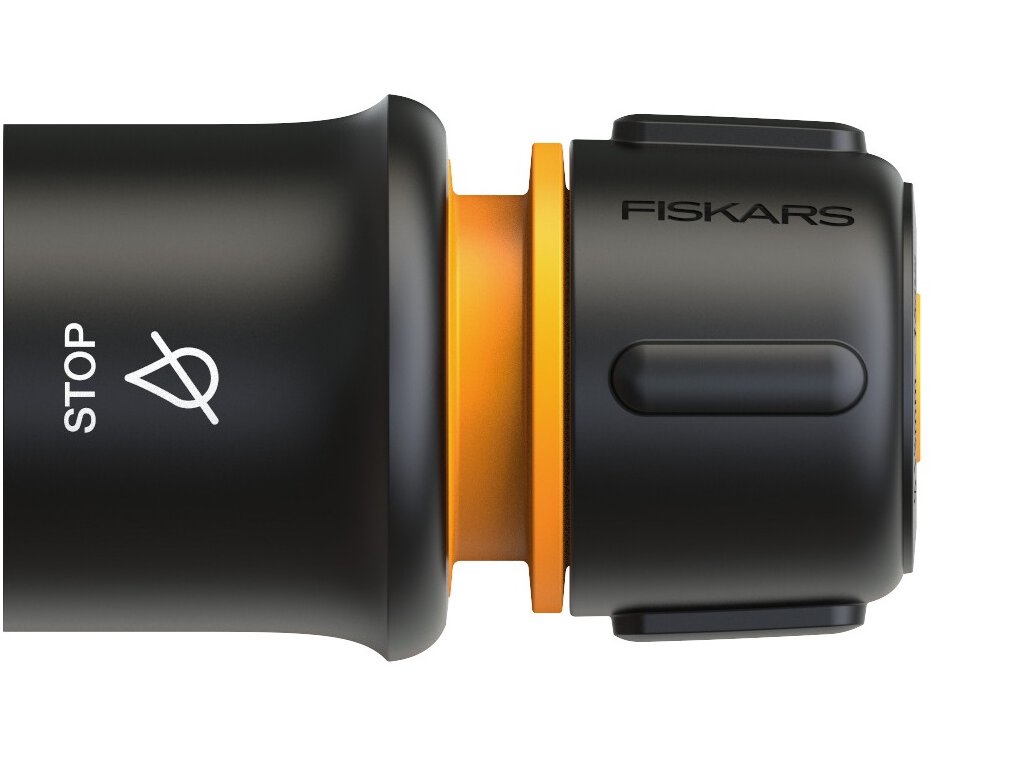 Kvalitná rýchlospojka Fiskars STOP pre hadice s priemerom 13 až 15 milimetrov (1/2" - 5/8"). Rýchlospojka má univerzálne pripojenie, ktoré je kompatibilné aj s ostatnými značkami. Vnútorný mechanizmus STOP prerušuje prietok vody rýchlospojkou pri výmene zavlažovacích pištolí, tyčí, zavlažovačov a ďalších pripojení hadíc bez nutnosti zastavenie prívodu vody.