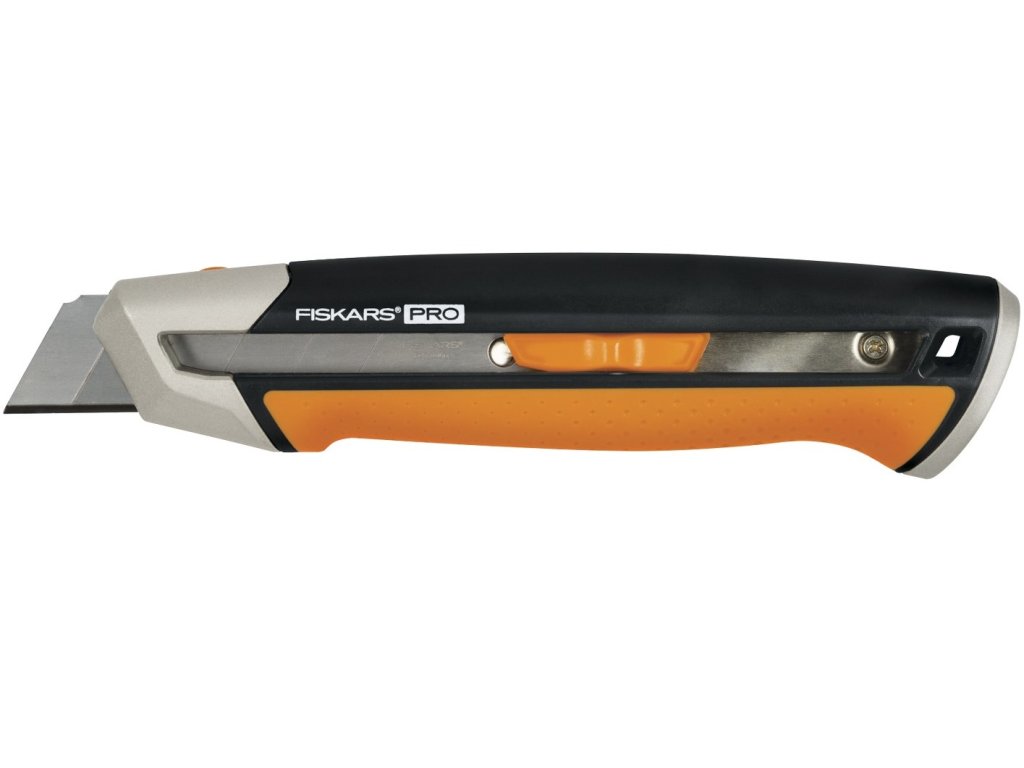 Kvalitný odlamovací nôž CarbonMaxTM s ľahkou a rýchlou výmenou predného britu. Nôž má integrovanú pomôcku, ktorá jednoducho odlomí a zachytí použité brity. Tento model je kompatibilný s odlamovacími britmi s veľkosťou 25 milimetrov. Odlamovacie nože FISKARS CarbonMaxTM sú vybavené uzamykacím systémom, ktorý bráni náhodnému uvoľneniu a to bez vplyvu na rýchlosť výmeny britu. Rukoväť s mimoriadnou ergonómiou a komfortným povrchom SoftGripTM. Brity CarbonMaxTM vydžia ostré až 24 krát dlhšie.