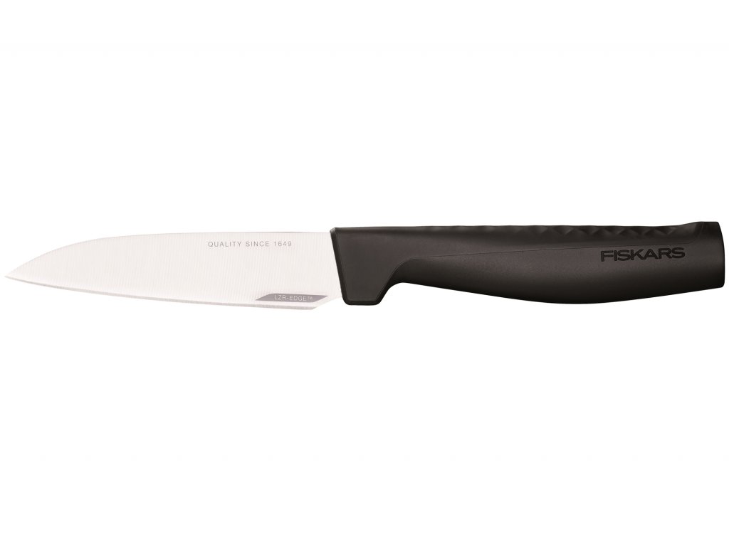 Kvalitný okrajovací nôž z rady Hard EdgeTM s ostrou špičkou ako stvorený na krájanie a okrajovanie ovocia a zeleniny. Čepeľ noža je vyrobená zo silnej nerezovej oceľovej planžety. Ostrie noža je vyrobené revolučnou technológiou LZR-EDGETM. Táto technológia umožňuje, aby zostal nôž ostrý štyrikrát dlhšie ako bežné nože. Držadlo noža je ergonomicky tvarované a má jedinečný 3D vzor, ktorý zaisťuje perfektné držanie.