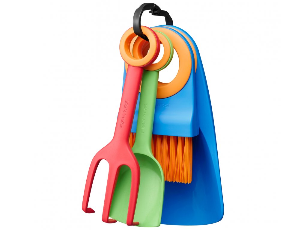 Kvalitné ľahké ručné náradie s tou správnou veľkosťou pre detské ruky. Sada detského ručného náradia Fiskars My First je vyrobená z vlákien vystužených materiálov, ktoré zaručujú dlhú životnosť. S touto sadou kultivačných nástrojov si kopanie, hrabanie, zametanie a sejbu vaše deti zamilujú už od prvého momentu. Tieto vysokokvalitné nástroje sú navrhnuté presne tak, aby vyhovovali malým rukám a veľkým nápadom. Lopatka a kultivátor majú dlhé rukoväte, čím umožňujú rôzne spôsoby uchopenia. Set neobsahuje žiadne malé časti, takže je aj bezpečnejší pre deti. Náradie má veľké otvory pre jednoduché zavesenie v úložnom priestore. Sada nástrojov s nádhernými žiarivými farbami je ideálna pre deti vo veku od 3 do 9 rokov.
