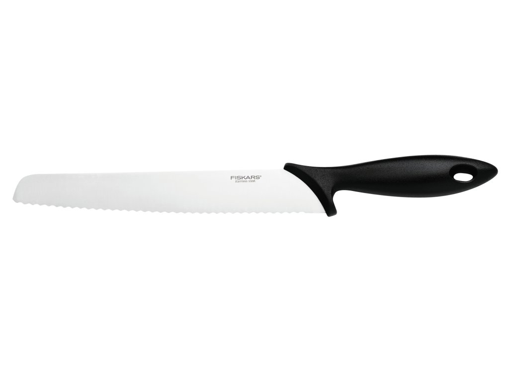 Tento nôž na pečivo od FISKARS z rady Essential má čepeľ dlhú 23 centimetrov a je ideálny na krájanie chleba. Má vlnitú čepeľ, ktorá sa dá jednoducho ostriť pomocou ostriča Roll-Sharp. Rada Essential ponúka kvalitné nože, ktoré sú vhodné pre každodenné používanie. Majú masívne držadlá so zarážkou pre prsty zaručujúce bezpečný úchop. Vďaka tomu sa aj pohodlne používajú. Nože sa vyznačujú ostrými čepeľami, ktoré sa ľahko udržujú pomocou brúsky alebo ocieľky Fiskars. Čepele nožov Essential sú vyrobené z vysokokvalitnej japonskej nerezovej ocele s tvrdosťou HRC 53. Rukoväte nožov sú vyrobené z čierneho nárazuvzdorného polypropylénu. Všetky nože je možné umývať v umývačke riadu.