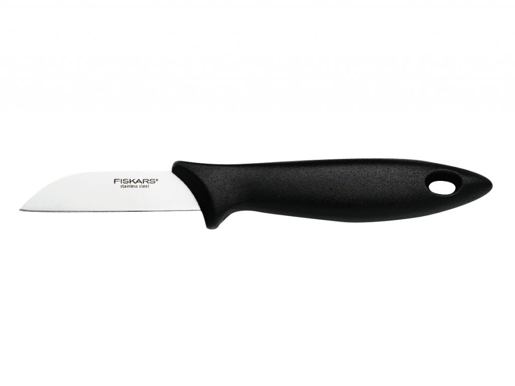 Malý, ľahký, praktický lúpací nôž s rovnou čepeľou dlhou 7 centimetrov a pevnou špičkou. Tento nôž je ideálny na lúpanie a krájanie ovocia a zeleniny. Taktiež je vhodný na vykrajovanie škvŕn a kazov. Rada Essential ponúka kvalitné nože, ktoré sú vhodné pre každodenné používanie. Majú masívne držadlá so zarážkou pre prsty zaručujúce bezpečný úchop. Vďaka tomu sa aj pohodlne používajú. Nože sa vyznačujú ostrými čepeľami, ktoré sa ľahko udržujú pomocou brúsky alebo ocieľky Fiskars. Čepele nožov Essential sú vyrobené z vysokokvalitnej japonskej nerezovej ocele s tvrdosťou HRC 53. Rukoväte nožov sú vyrobené z čierneho nárazuvzdorného polypropylénu. Všetky nože je možné umývať v umývačke riadu.