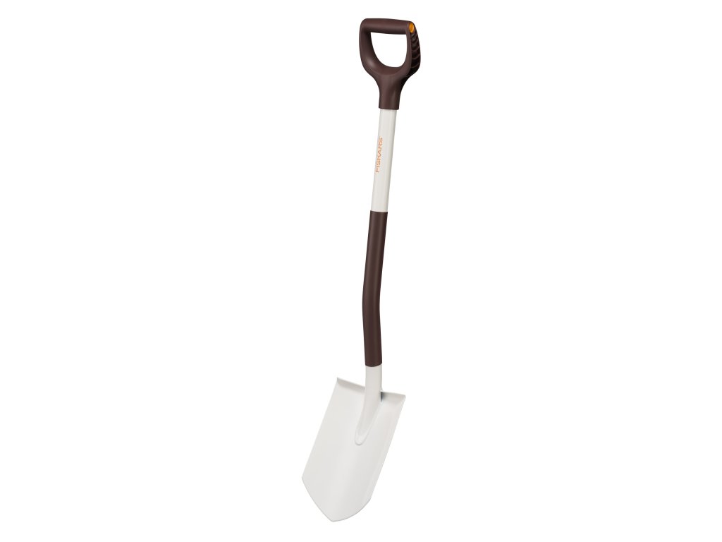 Špicatý záhradný rýľ Fiskars White sa ľahko používa a dodáva pri práci v záhrade moderný štýl. Tento nádherný biely rýľ má naostrenú čepeľ, ktorá je ideálne na rytie, zarovnávanie a výsadbu v bežnej trávnatej ornici. Má vhodnú veľkosť pre prácu v malých alebo stiesnených miestach. Držadlo v tvare písmena D s pohodlným držaním izoluje od chladu. Nášľapná plocha pomáha pri prenikaní čepele do pôdy.