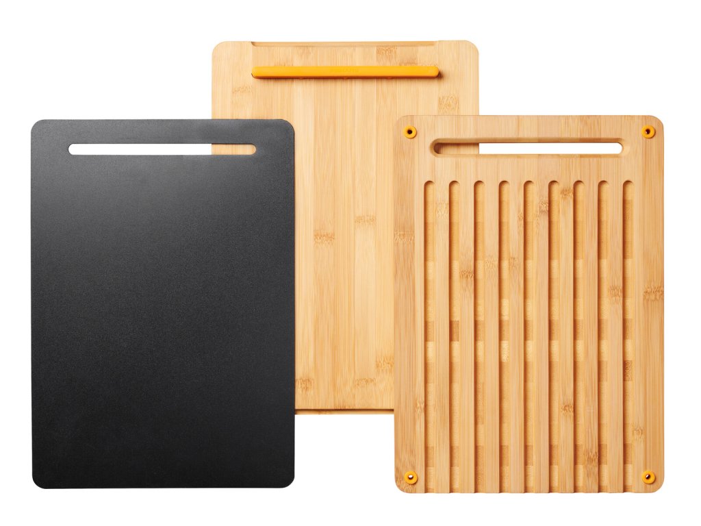 Vysokokvalitný trojdielny set bambusových dosiek na krájanie FISKARS z rady Functional Form. Praktická sada obsahuje dosku na krájanie chleba a pečiva s drážkami a plochú dosku na krájanie s vymeniteľnou plastovou doskou. Dosky majú silikónové protišmykové nožičky a pätku pre jednoduché uloženie. Dosky sú vyrobené z bambusu a povrch je ošetrený ľanovým olejom.