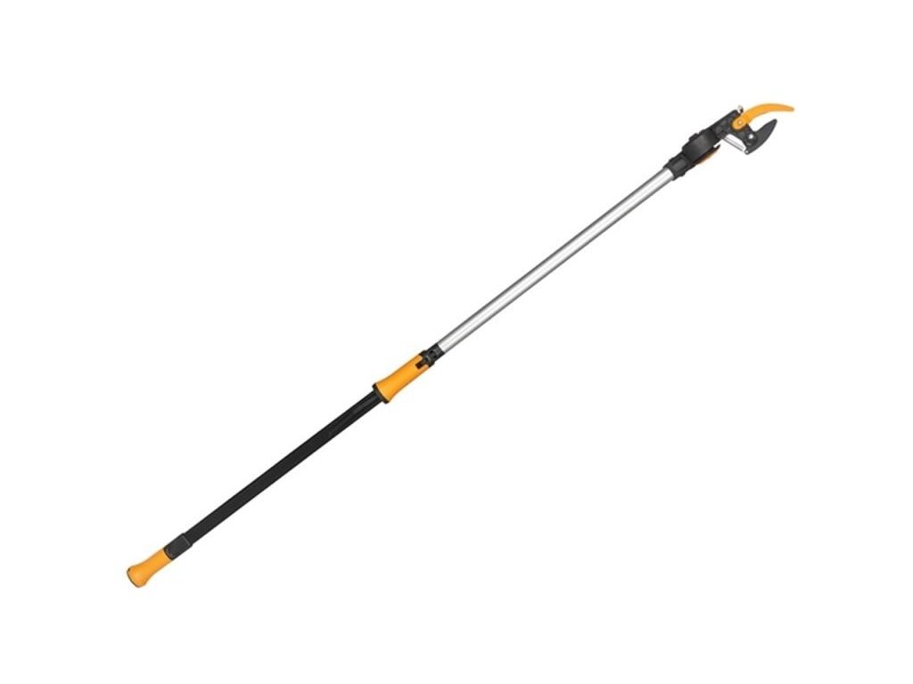 Záhradné univerzálne nožnice FISKARS UPX82 sú ako stvorené pre pohodlné strihanie čerstvých vetiev až do priemeru 32 milimetrov. Poskytujú viacúčelové nástroje s vynikajúcim dosahom do korún stromov či hustých kríkov. Nebudete už potrebovať žiaden rebrík. Nastaviteľná otočná hlava až o 230° a ľahký strižný mechanizmus zaisťujú bezpečný a rýchly strih konárov z veľkej vzdialenosti. Násada je dlhá 1,6 metra a maximálny dosah nožníc je až 3,5 metra. Inovatívny mechanizmus PowerGearTM znižuje až o 3,5 krát vynaloženú námahu a uľahčuje tak strihanie.