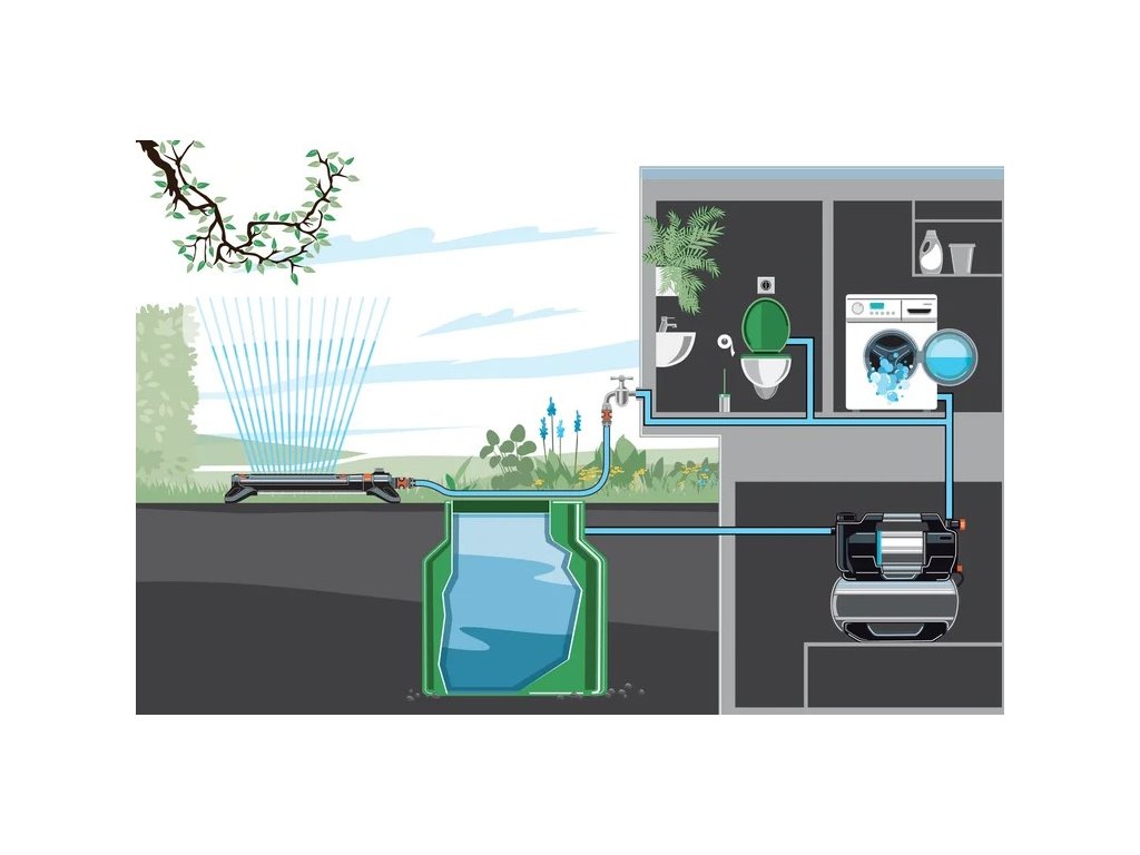 - Vhodná na zásobovanie domácnosti úžitkovou vodou (WC, práčka, sprchy) aj na zavlažovanie záhrady.