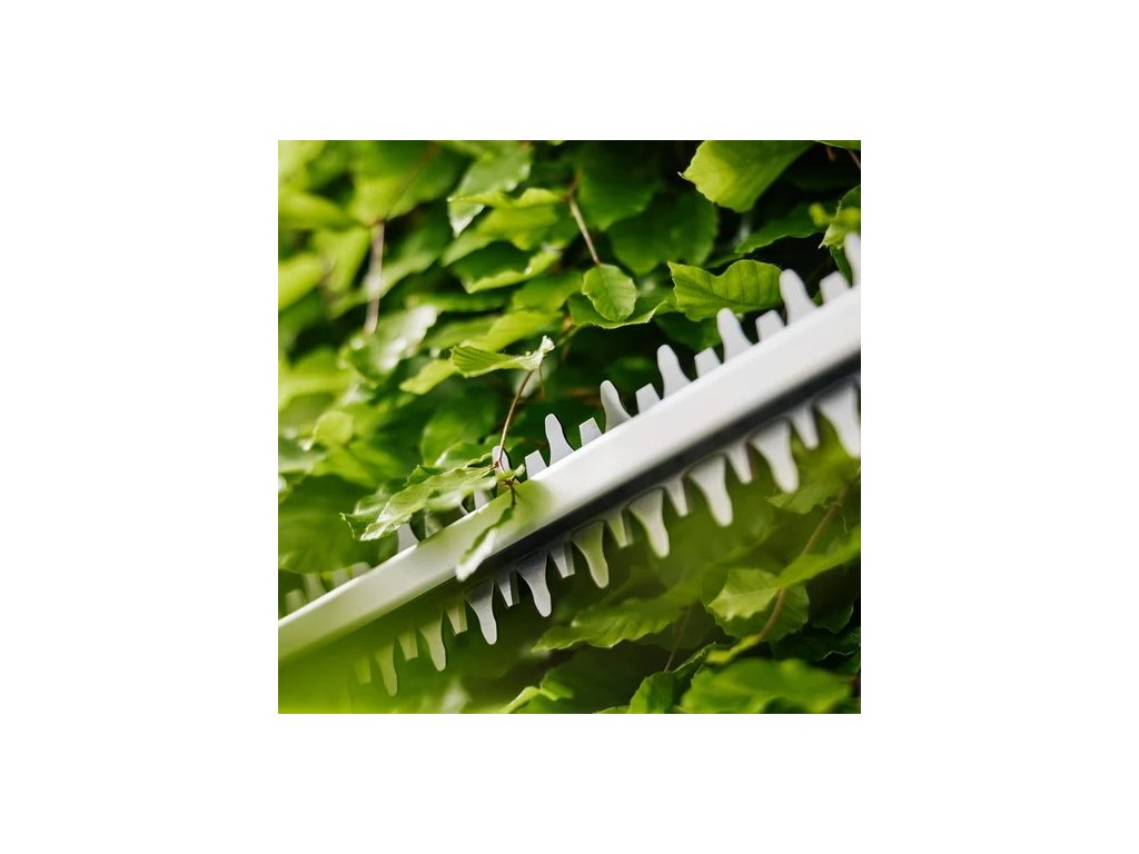 Nožnice na živý plot EasyCut 55/18V sú vybavené 55 cm dlhými nožmi rezanými laserom a brúsenými diamantovou technológiou. Tieto kvalitné nože sú navrhnuté tak, aby pri strihaní pevne držali konáre, čím sa eliminuje potreba opakovaných rezov a dosahujú sa čisté a rovnomerné výsledky. Nožnice sú vhodné na konáre s hrúbkou až 17 mm, takže bez problémov zvládnu úpravu väčšiny okrasných kríkov a živých plotov a zanechajú ich v úhľadnom, elegantnom tvare.