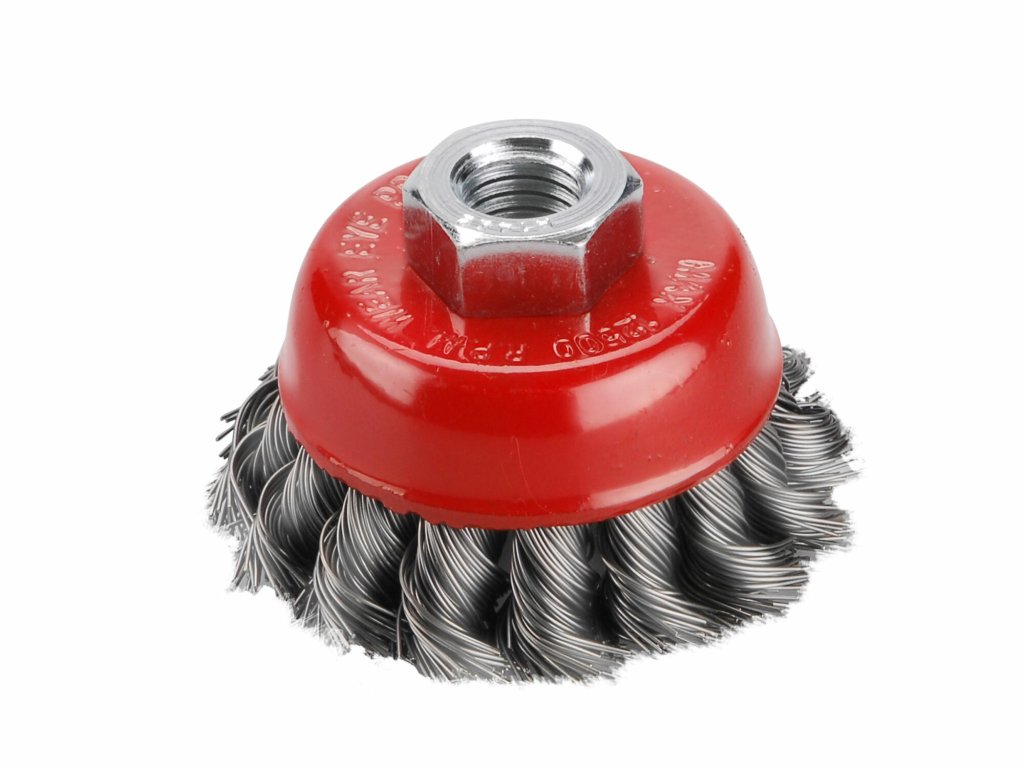 Kartáč hrnčekový M14 vrkočový, oceľový drôt 0,5mm, 65mm