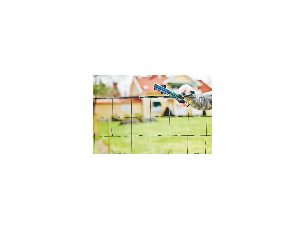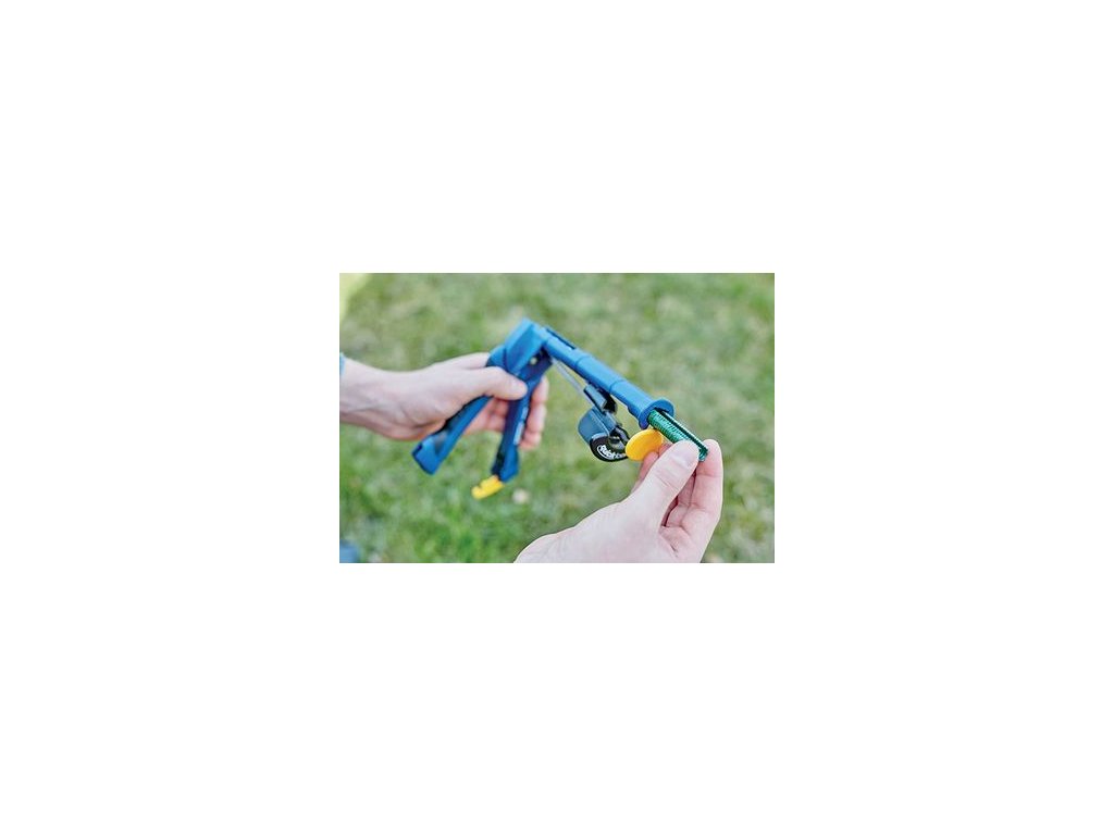 Viazacie kliešte k napínaciemu drôtu, pripevnenie textílií k drôtom, spájanie drôtov. pripevnovanie plotových výplní k nosnému drôtu, sponkovanie laniek, sponkovanie drôtov. Kapacita zásobníka spôn: 58 Ks