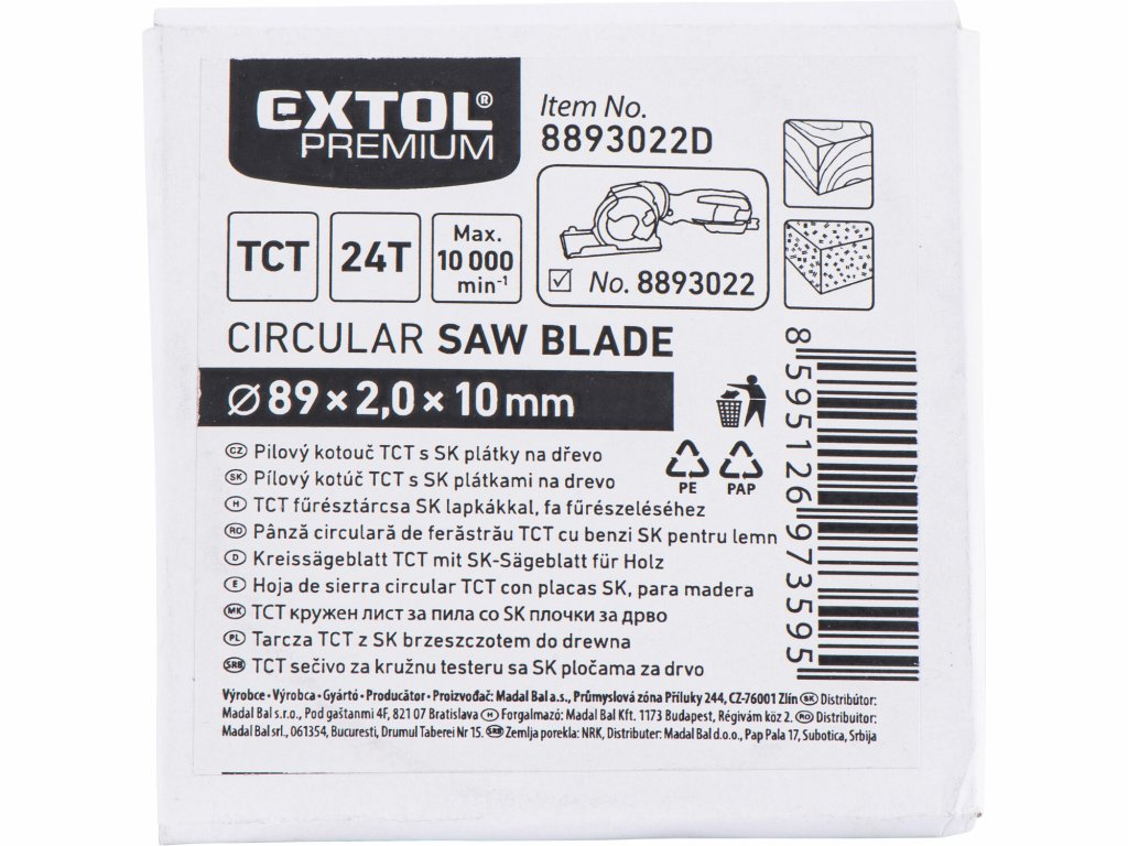 Kotúč pílový na drevo, O89mm, 24Z , pre 8893022, EXTOL PREMIUM