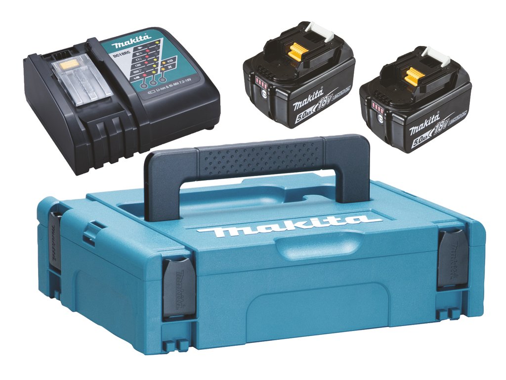 Súčasťou balenia je rýchlonabíjačka DC18RC, ktorá dokáže nabiť jednu batériu 5,0 Ah približne za 45 minút. Celý set je uložený v odolnom systémovom kufri Makpac, ktorý uľahčuje skladovanie aj prepravu a je kompatibilný s ostatnými kuframi Makita. Ideálne riešenie pre profesionálov aj náročných domácich používateľov, ktorí chcú mať spoľahlivý zdroj energie vždy poruke.