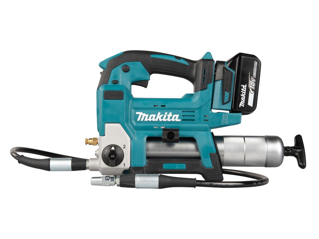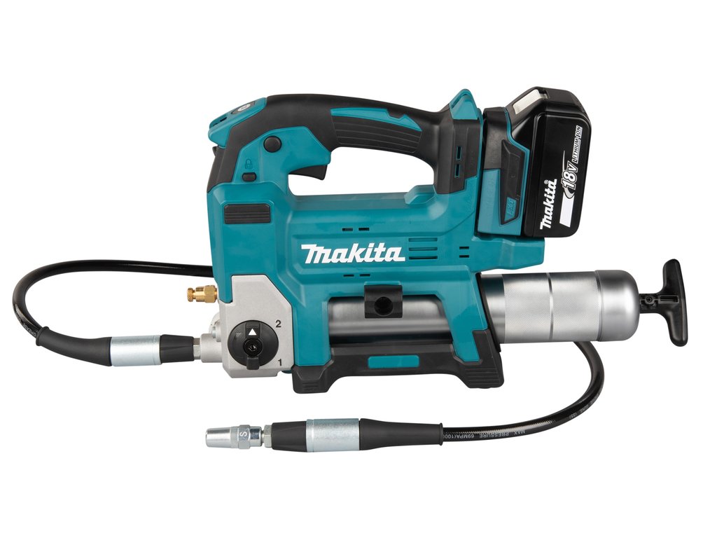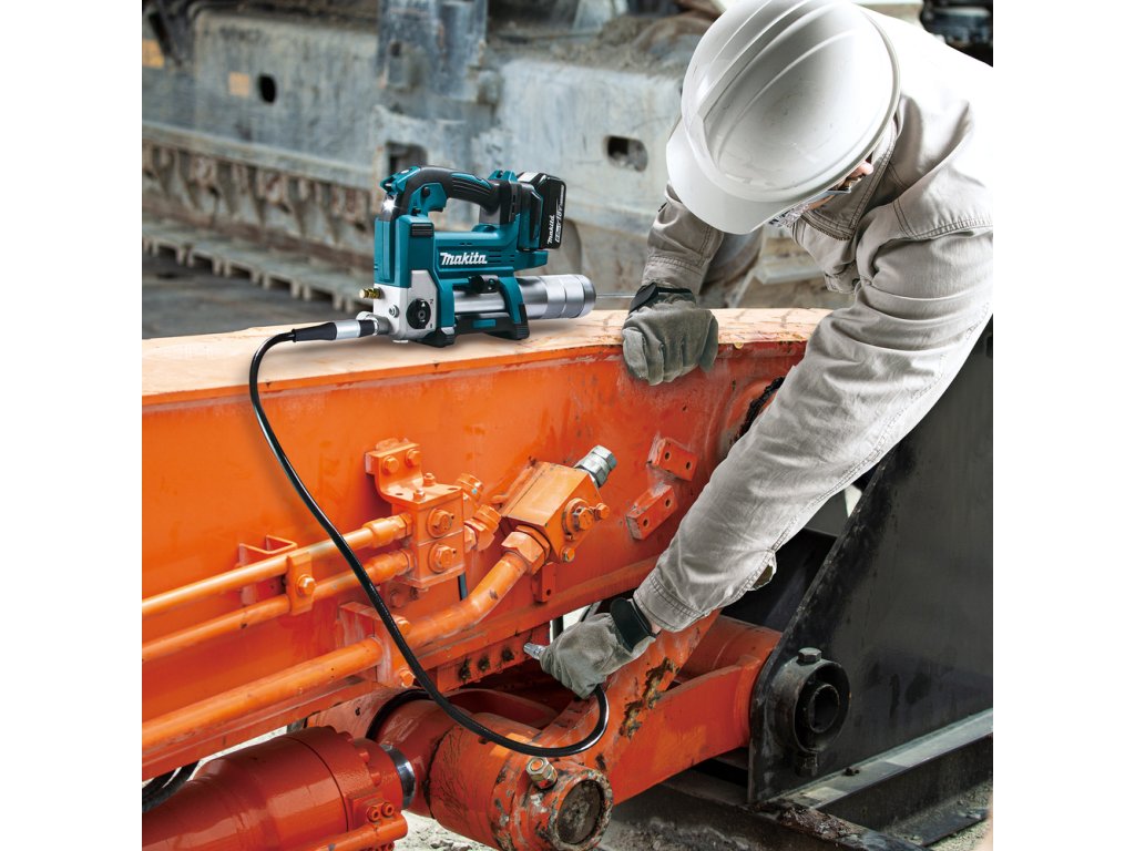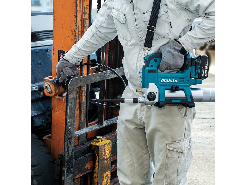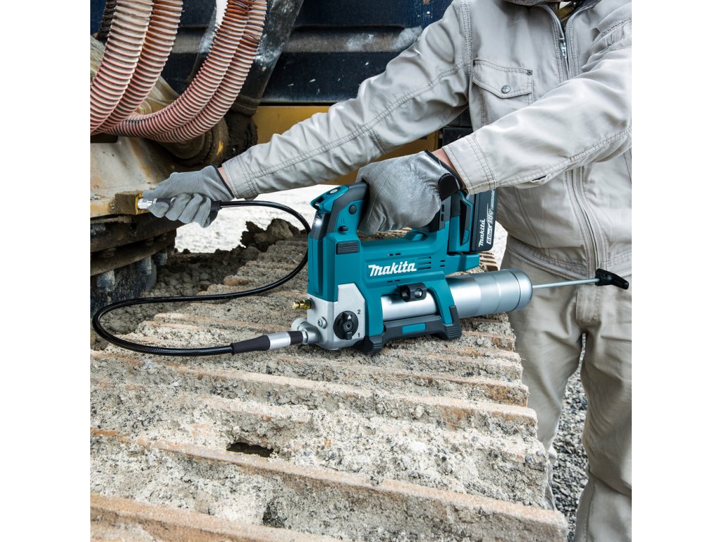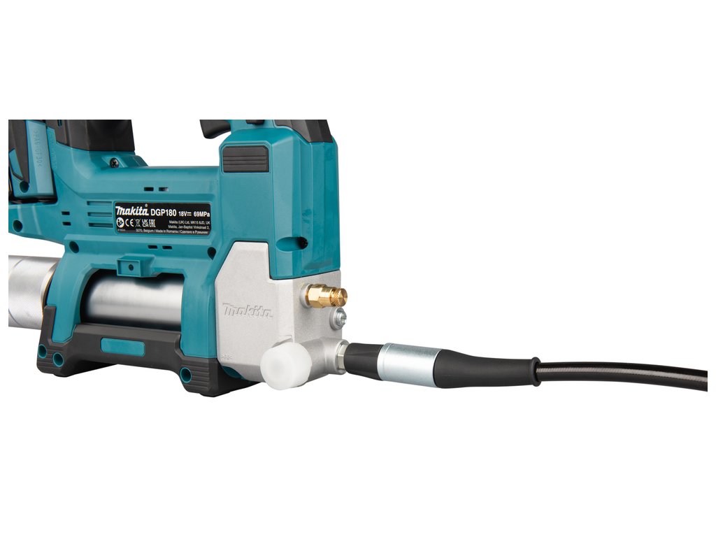 Makita DGP180Z je výkonná akumulátorová maznička určená na profesionálne použitie v dielňach, servisoch a údržbe strojov. Vďaka variabilnej regulácii otáčok je možné plynule nastaviť prietok maziva podľa potreby. Ponúka dva režimy – nízky prietok a automatický režim, v ktorom sa pri zablokovaní automaticky zvýši tlak a zníži prietok pre efektívnejšie premazanie.