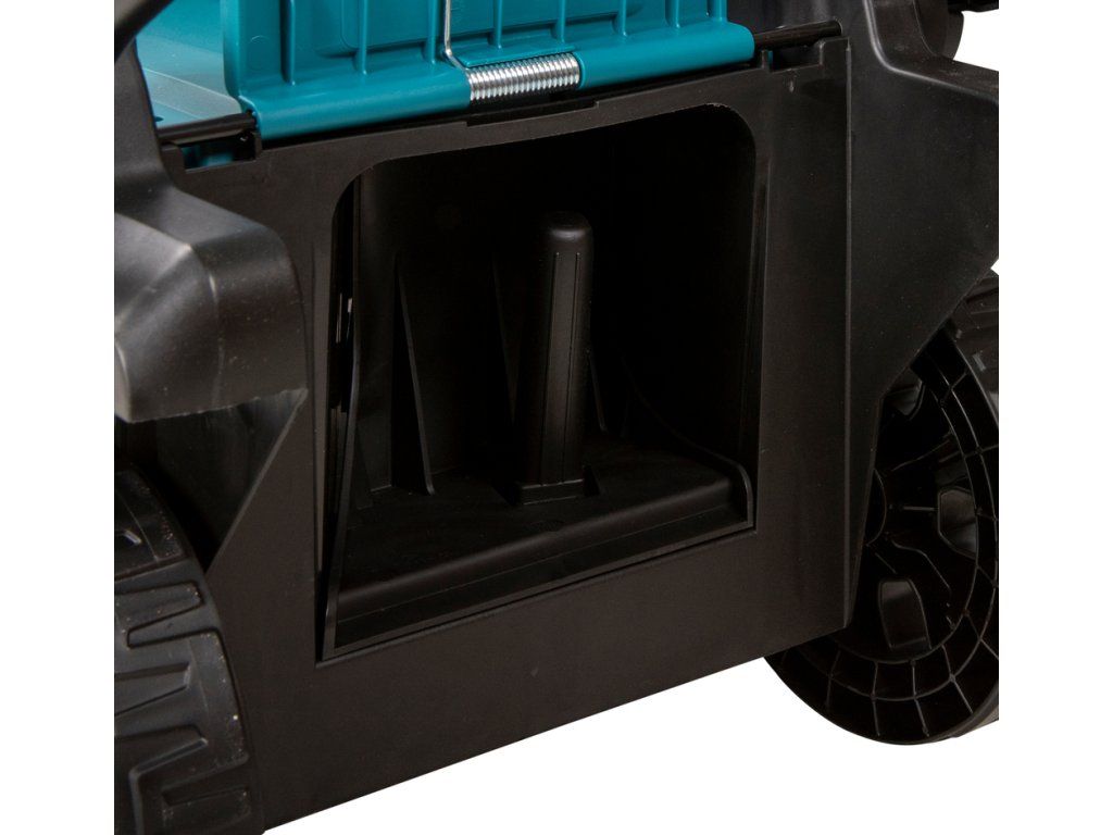 Kosačka je vybavená širokými kolesami pre jednoduchší pohyb na nerovnom teréne, zberným košom s indikátorom naplnenia a možnosťou vertikálneho skladovania pre úsporu miesta. Vďaka nízkej hlučnosti je vhodná aj do obytných zón a verejných priestorov.