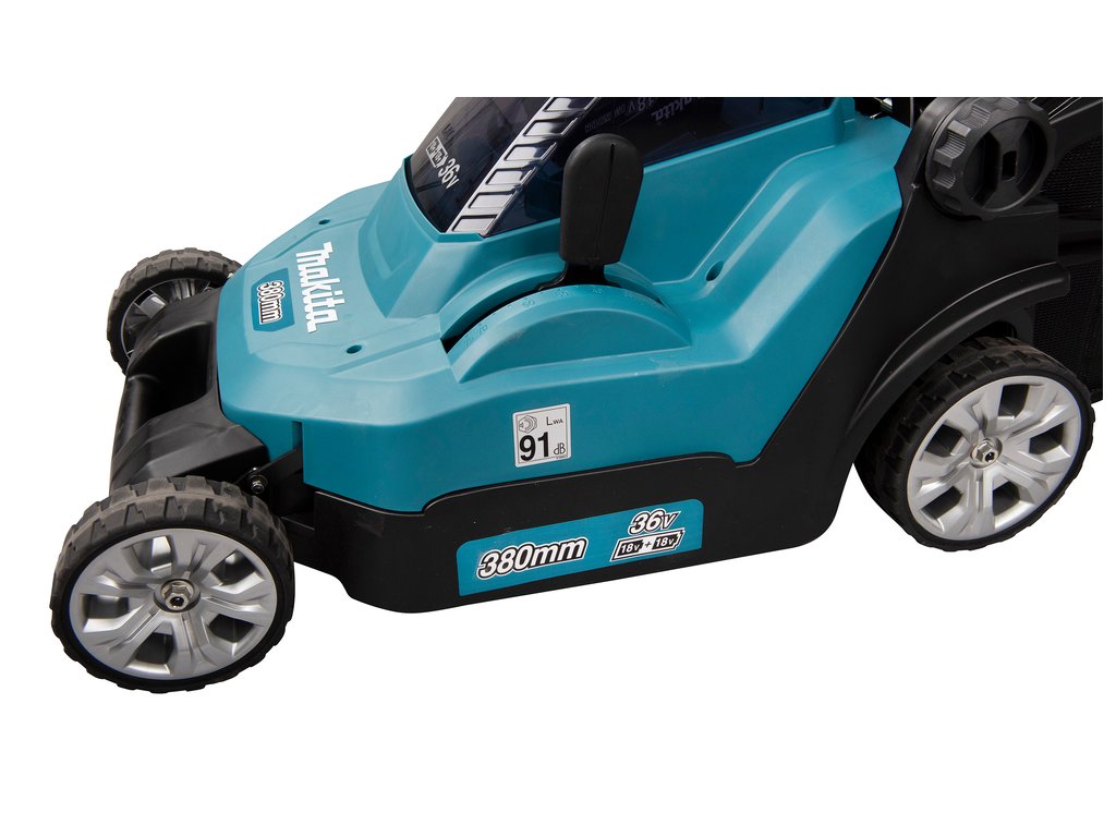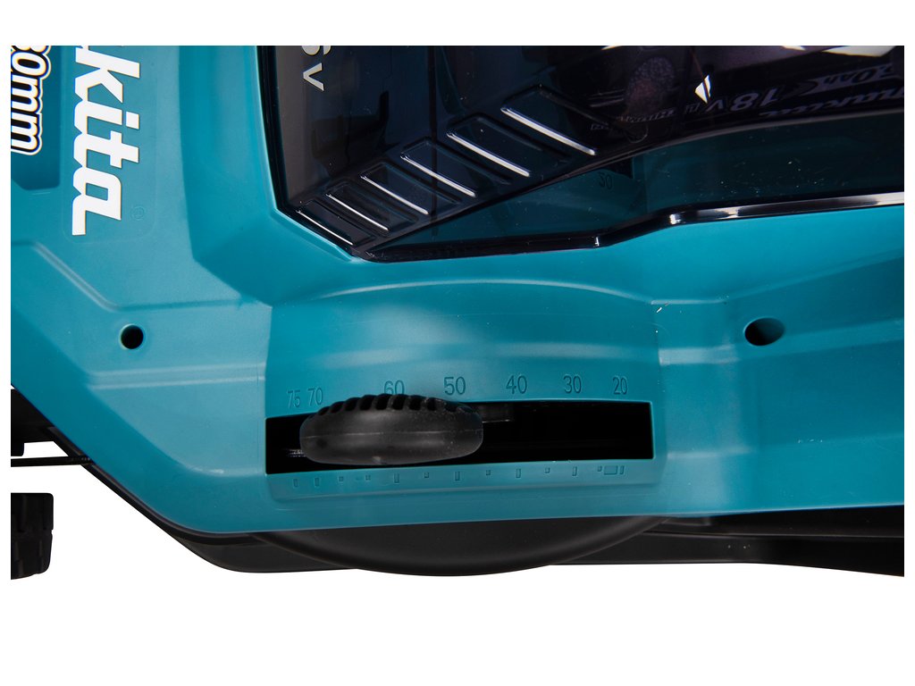 Dodáva sa vrátane 2× akumulátora BL1850B (18 V / 5,0 Ah) a rýchlonabíjačky DC18RC. Mulčovacia zátka sa predáva samostatne.
