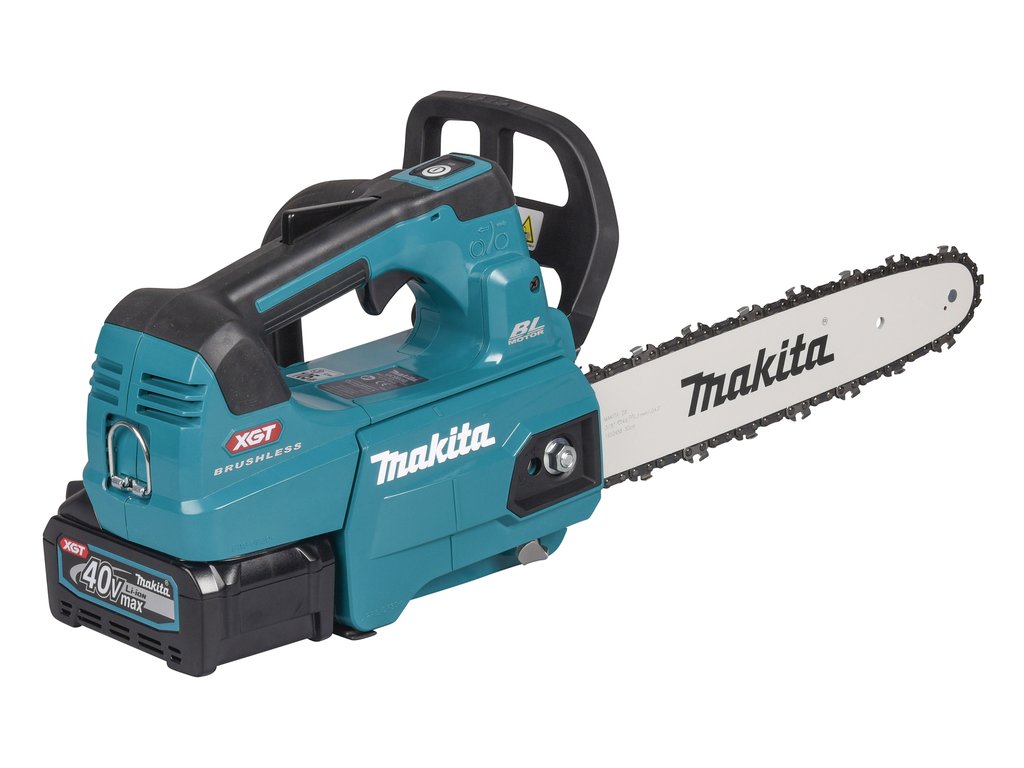 Makita UC003GZ je vysoko výkonná akumulátorová reťazová píla s hornou rukoväťou, ideálna na práce vo výškach — napríklad v korunách stromov.