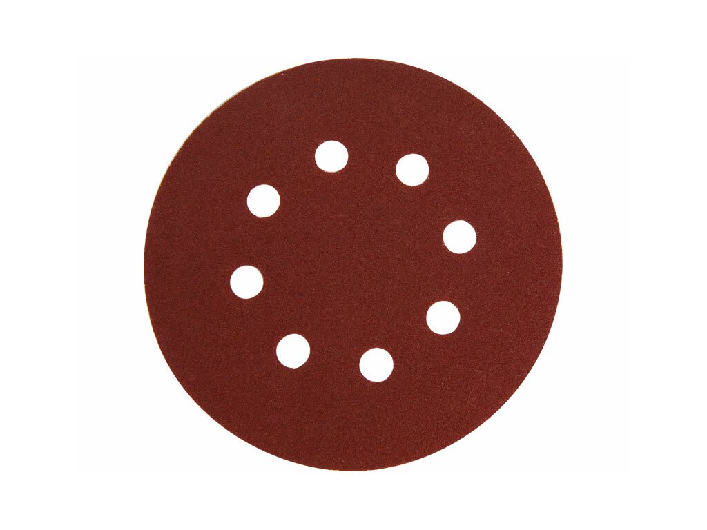 druh zrna: korund, 8 odsávacích otvorov umiestnených na kružnici s priemerom 65mm, priemer dier 10mm, použitie na rôzne druhy brúsneho náradia na opracovanie dreva, na odstraňovanie farieb, lakov a koróziex_technické parametre 125mm, P150
