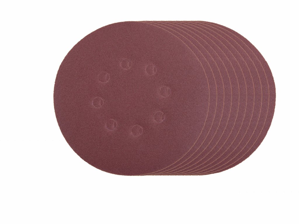 druh zrna: korund, 8 odsávacích otvorov umiestnených na kružnici s priemerom 65mm, priemer dier 10mm, použitie na rôzne druhy brúsneho náradia na opracovanie dreva, na odstraňovanie farieb, lakov a koróziex_technické parametre 150mm, P120