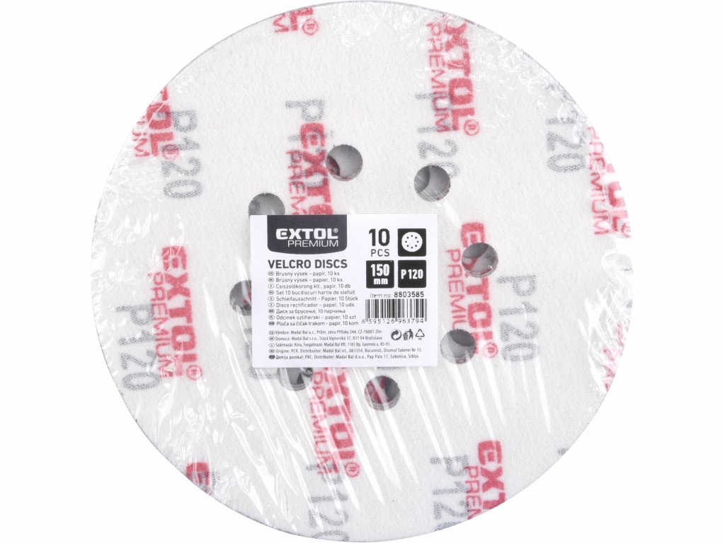 Papier brúsny na s. zips O150mm s otvormi, P120, 10ks, EXTOL PREMIUM