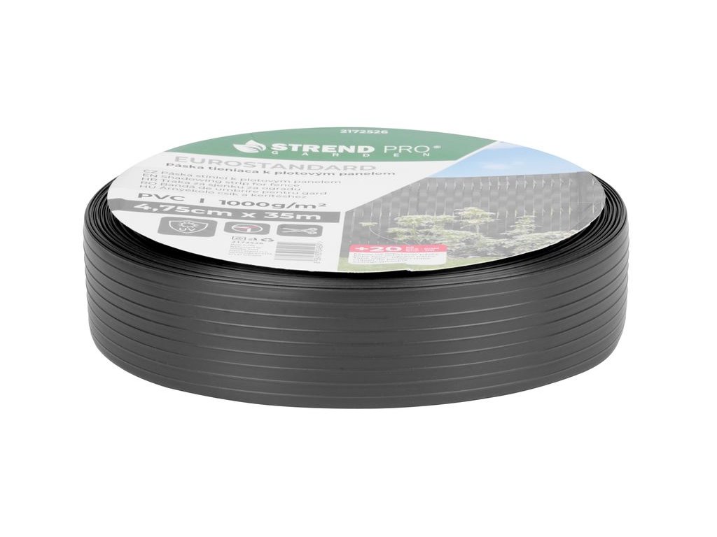 Páska Strend Pro EUROSTANDARD, 47,5 mm, L-35 m, tieniaca, antracit, krycia, na plotové panely, s 20 klipsami, 1200g/m2, PVC, RAL7016