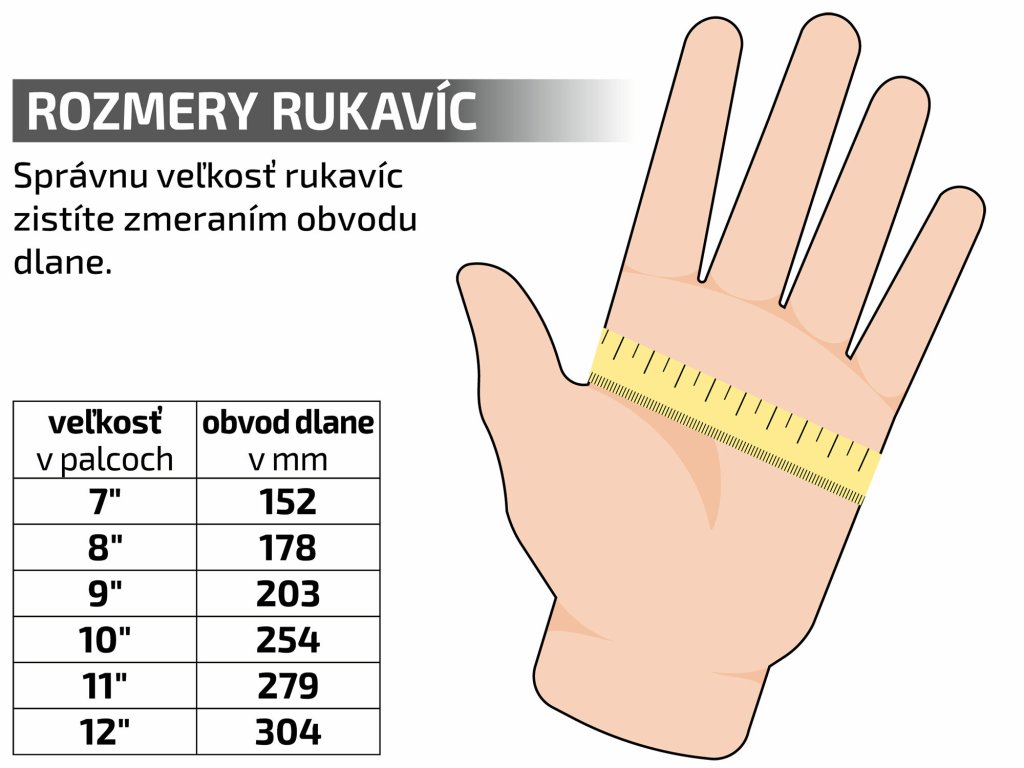 bezšvový úplet zo zmesi bavlny (65%) a polyesteru (35%), dlaň a prsty sú pokryté silnou vrstvou latexu, pružná manžeta, vyhovuje norme CE a EN388- protisklzová povrchová úprava latexu pre lepší úchop