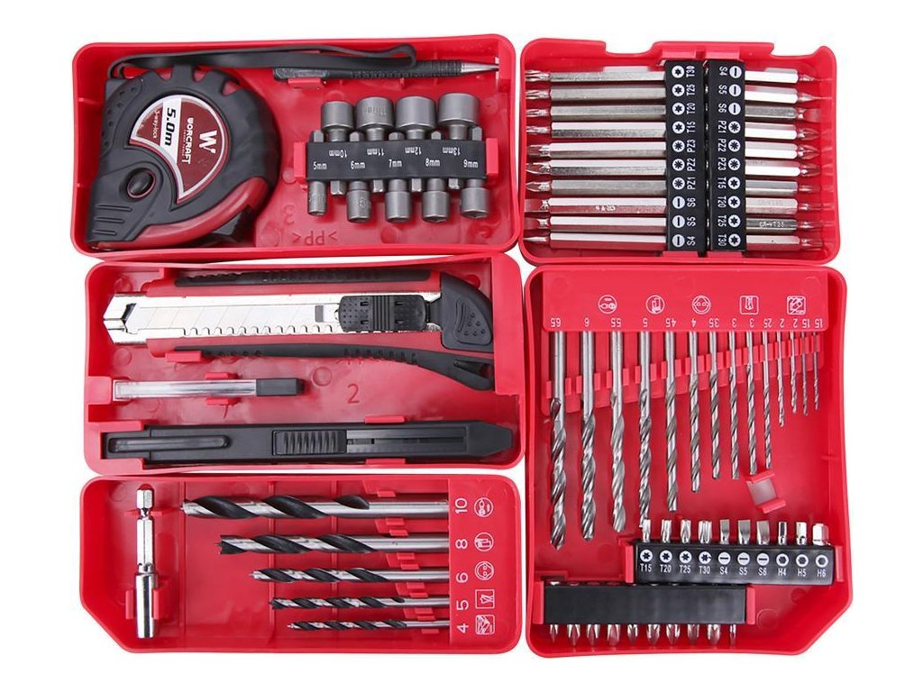 Skrutkovač Worcraft CHD-S20LiBAT ShareSYS 20V, Li-ion, bezuhlíkový, 2x akumulátor 2.0Ah, nabíjačka, set s príslušenstvom 73ks, v kufríku