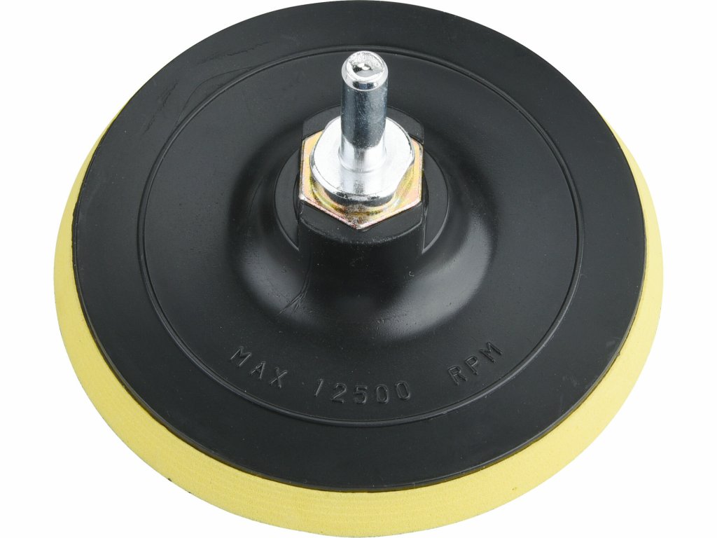lichobežný tvar umožňuje jednoduché brúsenie v kútoch, penová vrstva umožňuje mierne vyosenie a bráni vzniku škrabancov- redukcia zo závitu M14 na úchyt ∅8mm do vŕtačky