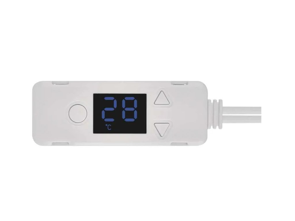 - Automatické zapnutie pri dosiahnutí teploty radiátora (na ktorom je umiestnený snímač) nad 28 °C a automatické vypnutie pri poklese pod 25 °C